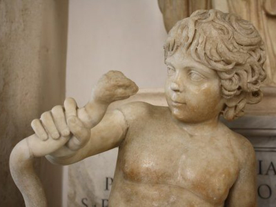 Como a deusa Hera era casada com Zeus, ela perseguia ferozmente as amantes mortais do pai dos deuses e também os filhos bastardos fruto dessas relações. Com Héracles não seria diferente, tanto que logo ao nascer, ela enviou duas serpentes para o seu berço com a finalidade de mata-lo. Mas a criança estrangulou os dois répteis com a força das próprias mãos. Com o passar dos anos, ele foi crescendo e se tornando cada vez mais corajoso e forte fisicamente, até se transformar em um grande guerreiro. Mas a existência do semideus continuava incomodando a deusa Hera.